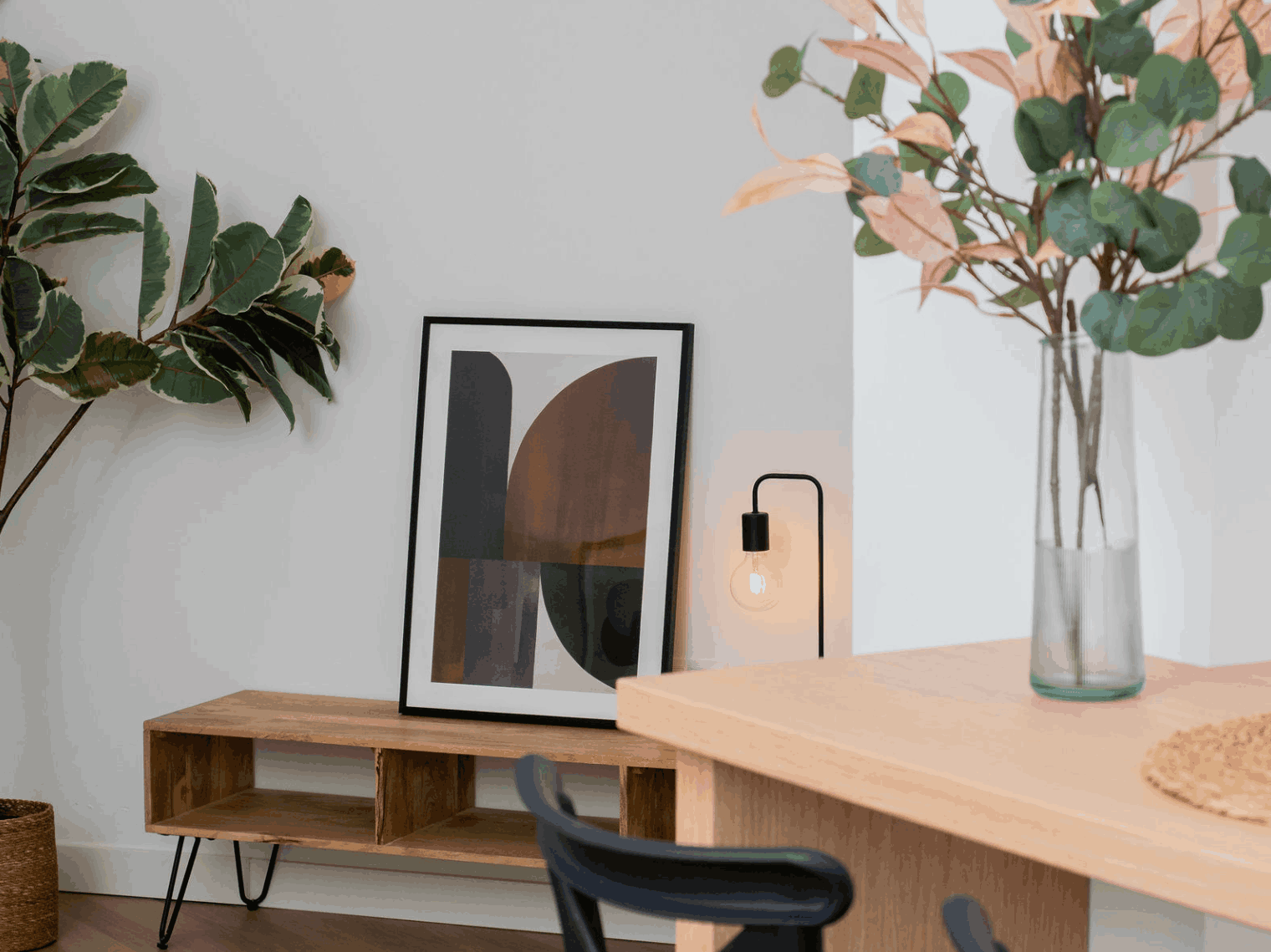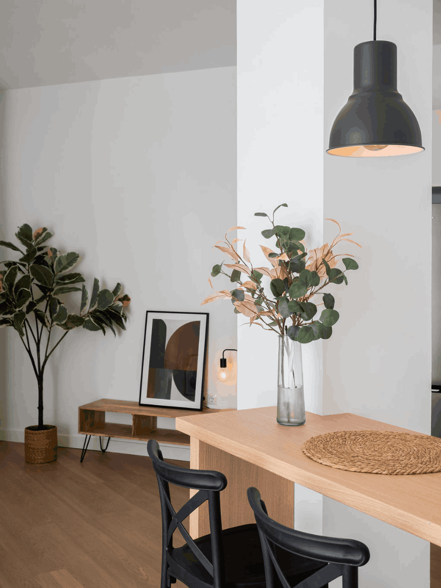 - Ambientes Cálidos: Combinación de maderas nudosas, elementos metálicos negros y acentos en tonos grises y anaranjados.